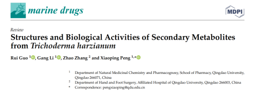 近日,公司2019级本科生郭蕊在国际期刊Marine Drugs(海洋药物,影响因子:6.085,JCR大类医学2区)发表题为“Structures and Biological Activities of Secondary Metabolites fromTrichoderma harzianum”(木霉属哈茨木霉次生代谢产物的结构和生物活性)的综述性论文(DOI:10.3390/md20110701)。365英国上市公司为该论文的第一单位和通讯单位,郭蕊为第一作者,彭晓娉副教授为通讯作者。该项研究得到了国家自然科学基金等项目的资助。
