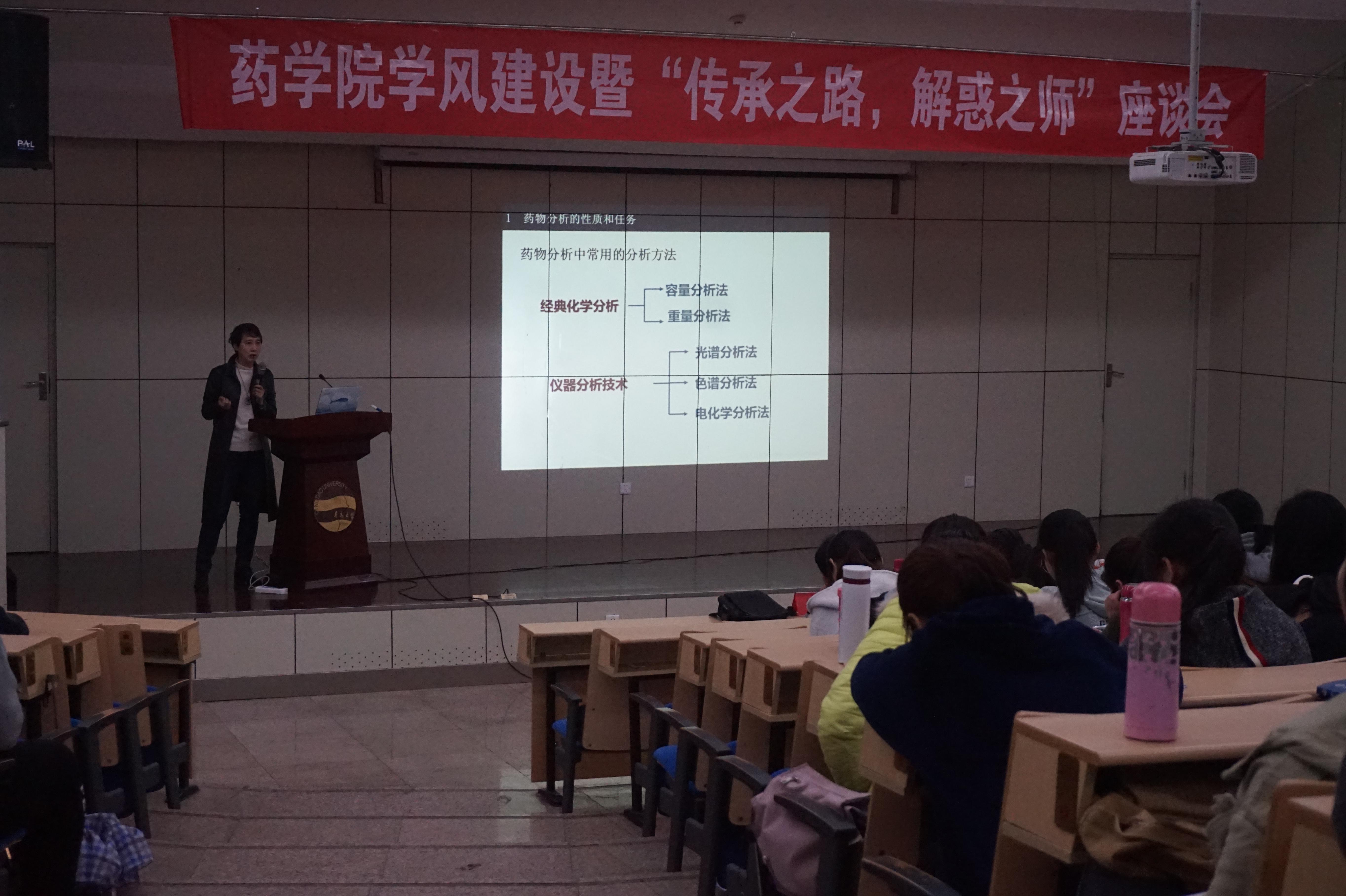 2018422日上午900,365英国上市公司学风建设暨“传承之路,解惑之师”第二场座谈会在图书馆报告厅顺利召开。365英国上市公司副教授王继波,教授李英霞,药物分析教研室主任刘坤受邀出席,365英国上市公司辅导员雷舒涵及365英国上市公司全体低年级员工参与此次会议。