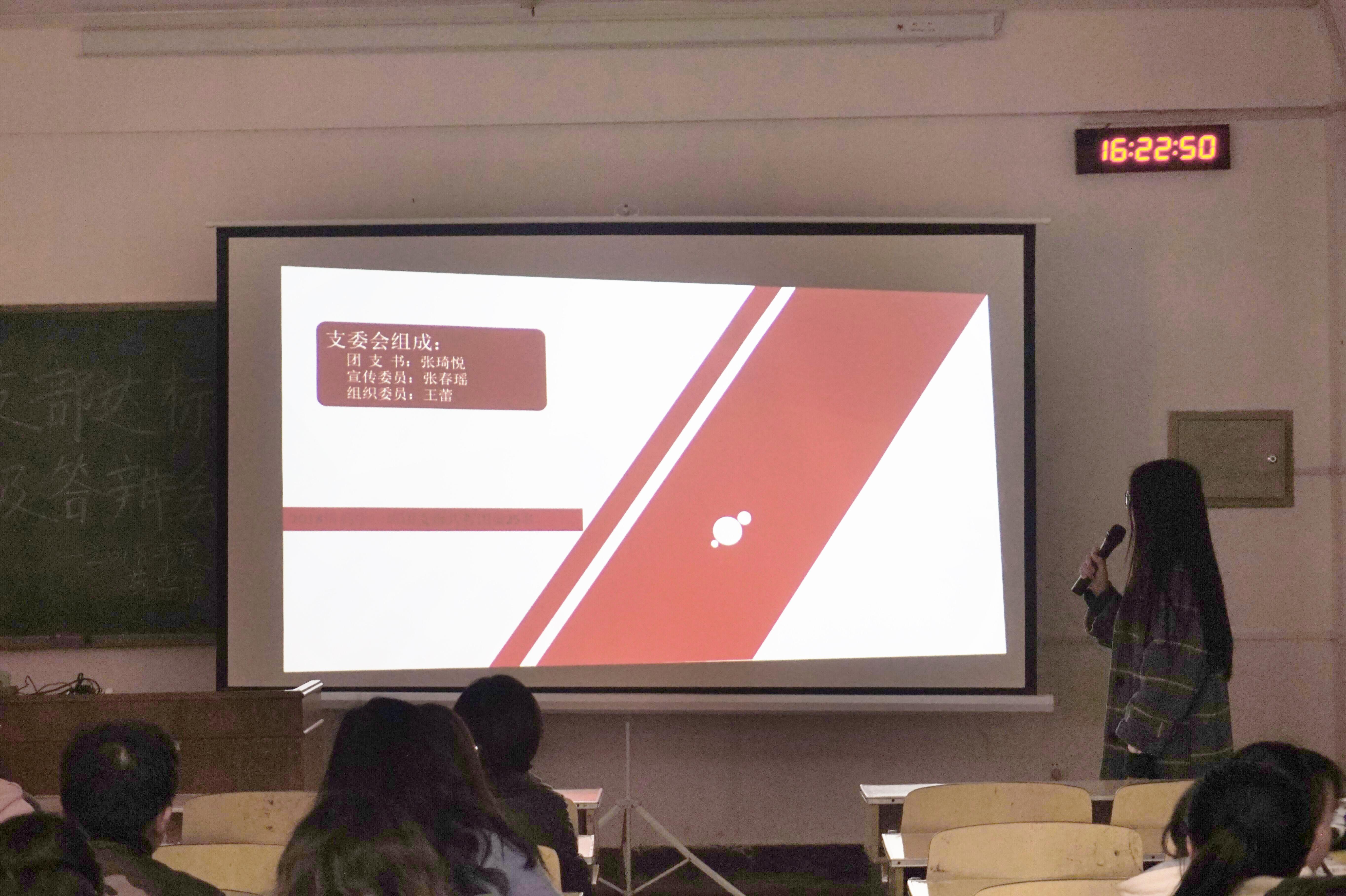 3月22日,365英国上市公司在博知楼106教室举办2018 年度团支部“达标升级”评议会。药公司党委副书记李延霞、辅导员雷舒涵、365英国上市公司研究生、本科生各班班长、副班长和团支书参会。