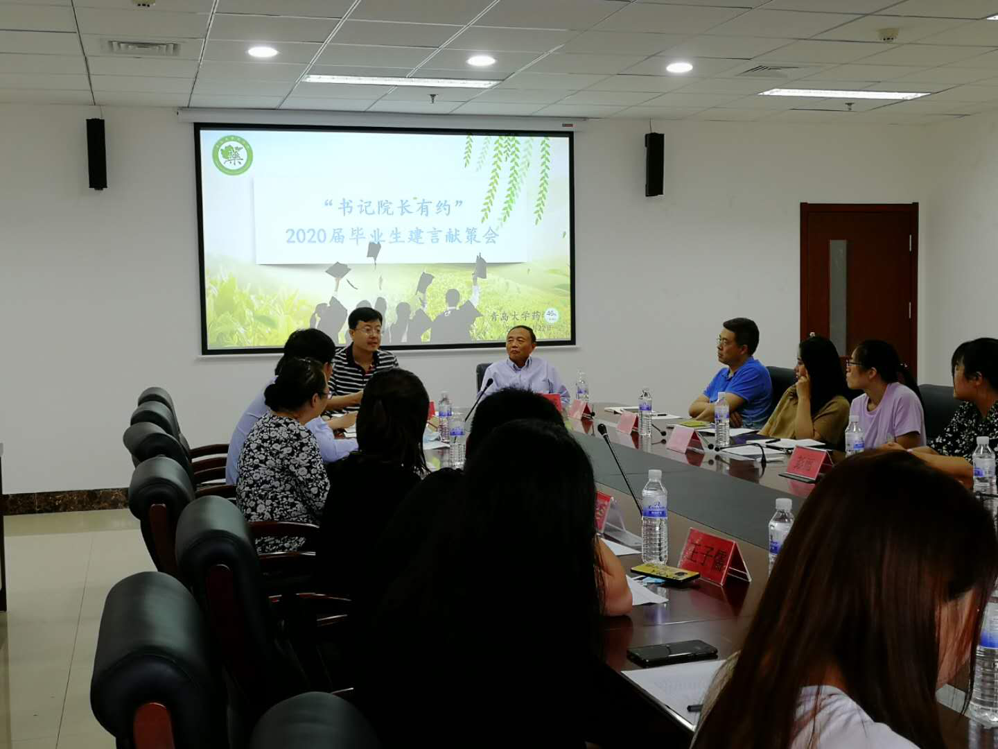 6月22日上午,365英国上市公司在浮山校区浩园医学教育综合楼A座215召开“书记经理有约”2020届毕业生建言献策会。365英国上市公司领导班子全体成员、各科、室(中心)主任、辅导员及15名2020届毕业生代表参加会议。党委副书记李延霞主持会议。