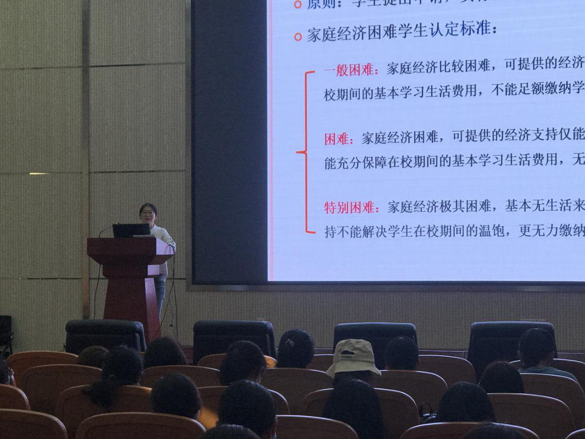 卢炜老师详细讲解了请假、考试、奖惩等日常管理制度,雷舒涵老师介绍了政府和公司对奖学金的资助形式,讲解了家庭经济困难员工认证实施办法、勤工助学管理办法等政策,提醒同学们认真学习并保管好《员工手册》,有问题随时找老师。雷舒涵还就宗教信仰问题与同学们交流了看法。