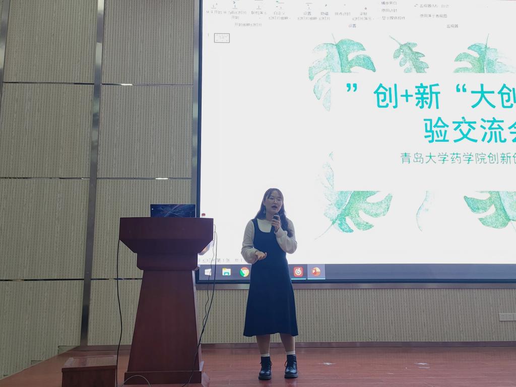 接下来,六位2018级同学依次进行了经验分享。首先进行经验分享的是宋雪,她从什么是大创、为什么要做大创、如何做大创以及做大创的注意事项四个方面进行了详细阐述;接着进行分享的是张玉香,她首先简单介绍了所在团队的大创课题,着重讲述了大创项目的具体时间分配,提醒同学们注意时间安排和团队合作;第三位分享人是许德利,他主要从大创过程的简要讲解和注意的问题这两个方面进行了经验分享;第四位上场的是金艳艳,她对大创的流程进行了详细的补充,并与大家分享了她们团队在实验过程中有趣好玩的事情;接下来是田晓的分享,她对参与大创的目的和作用进行了细致的补充,同时提醒大家在大创进行过程中要多与老师沟通,注重团队合作;最后一位分享人是郭雅欣,她就立项答辩进行了重点阐述,指出比赛中容易出现的问题,向大家介绍了总结出的答辩技巧。