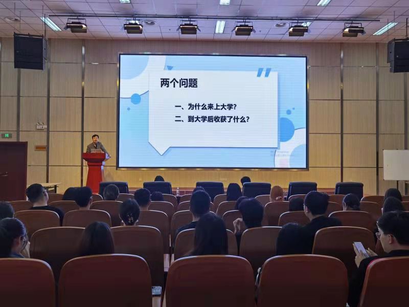 讲座开始,李在宝书记以“为什么上大学,上大学收获了什么”两个问题出发,引发同学们对自己的本科生涯进行反思回顾,接着提出“面对残酷又激烈的社会竞争形势,我们又该做些什么?”,以此引出“顺时而谋,谋定而动”的主题,告诉同学们要抓住时机、主动出击,既要紧紧把握当今社会形势带来的机遇,又要擦亮眼睛,不跟风,不盲从,立足实际,敢想肯干,做新时代的弄潮儿。