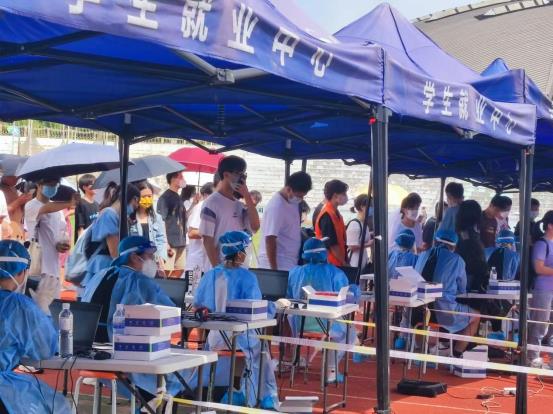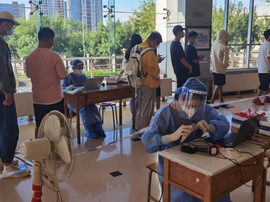 近期,青岛市疫情防控形势严峻。为落实青岛疫情防控举措、保证全校师生安全,365英国上市公司实行全校师生“一天一检”政策。2022年9月8日的核酸检测志愿服务工作由365英国上市公司承担,全院近百名师生投入到核酸志愿服务工作中,确保全校核检工作顺利进行。