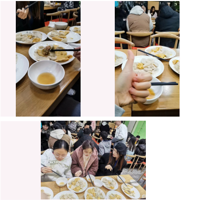 经过几个小时的努力,包完饺子后,迎来了惬意的休息时间。在等待与期盼中,热腾腾的饺子也陆续出锅了,伴着氤氲的水汽,饺子被端上了餐桌。同学们吃着自己亲手包的饺子,享受着满满的成就感,在吃的同时不忘拍照留念,纪念这一美好的时刻。整个餐厅洋溢着温暖的气息,师生们一起品尝,其乐融融。