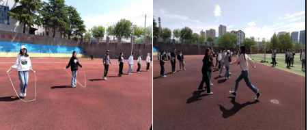 活动正式开始之前,同学们先进行赛前热身运动,而后同学们有序前往比赛场地。本次活动共组织了四项不同的体育比赛项目,分别为“4×100米男女接力跑”、“跳绳”、“扔沙包”和“踢键子”。此次比赛既有单人环节又有团队合作,无论是个人赛还是团队赛,都体现了同学们的高涨热情。同学们奋力拼搏,团结协作,为集体荣誉奔跑、跳跃、鼓气,每个同学脸上都洋溢着开心的笑容,在大家欢声笑语中,趣味运动会落下帷幕。