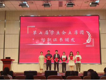 员工会主席杜晓通、分管主席姜婷钰、邢春晓、赵俊洁、新媒体中心主任王天屹、秘书长臧瑜分别上台致辞,总结汇报了过去一年的工作内容,他们激励各员工会成员在新的一年中戒骄戒躁,不忘初心,做老师和同学之间沟通的桥梁,继续努力为公司、公司、同学服务。仇启荣老师为各位主席团成员颁发任职证书。