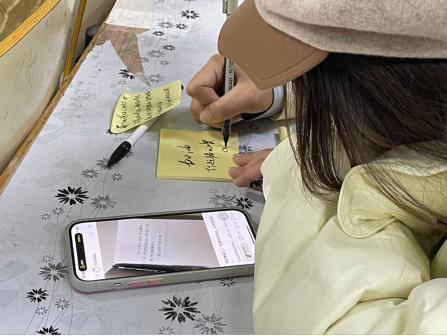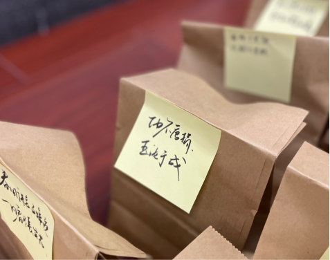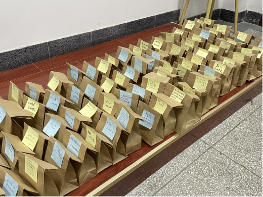 同学们把考研祝福贴在“考研暖心包”上,一句句温暖诚挚的话语,不仅承载着对考研学子美好祝愿,也展现了公司学子同舟共济、相亲相爱的良好氛围。