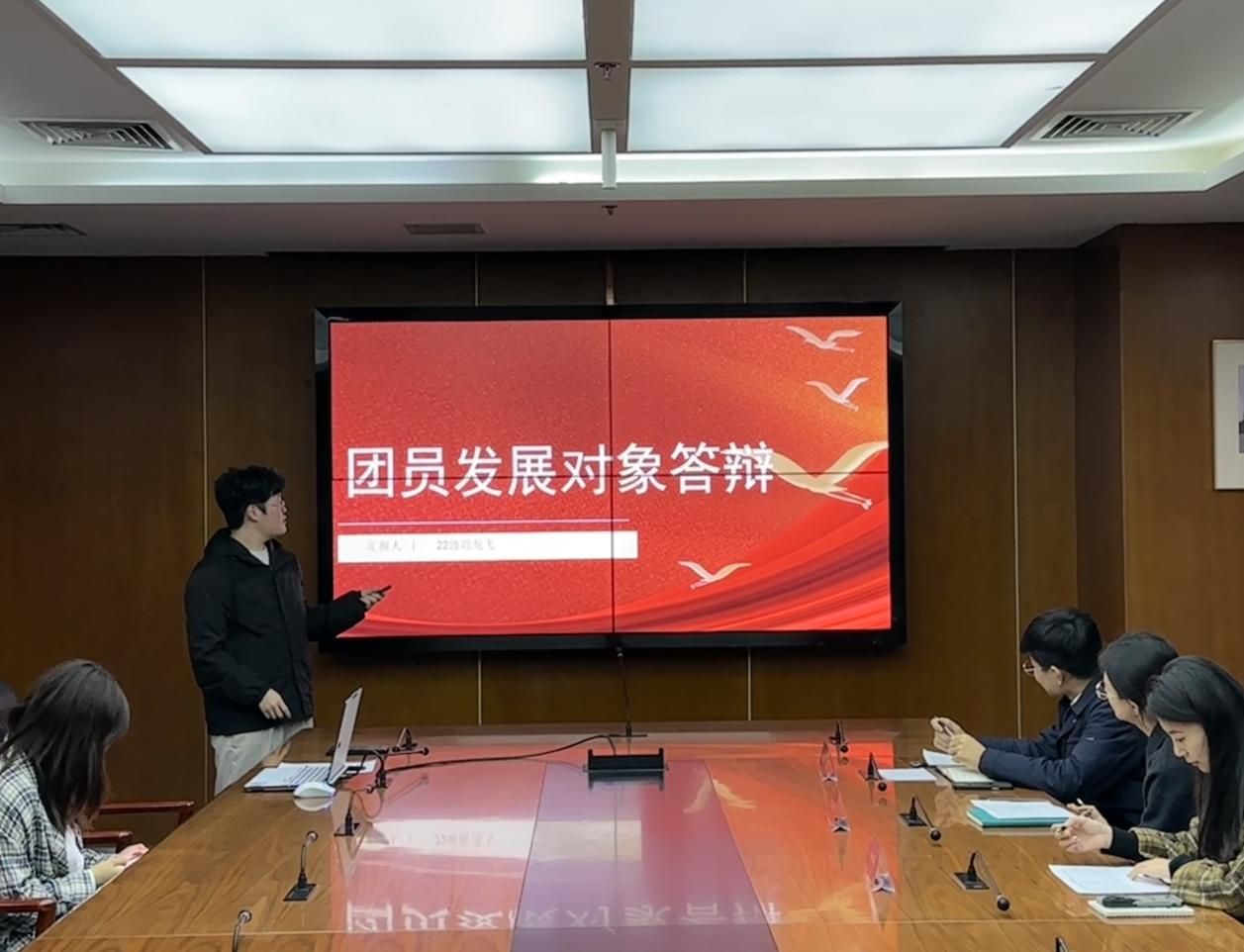 为贯彻落实全面从严治团要求,严格规范团员发展工作程序,公司团委于4月2日组织召开2025年春季学期团员发展对象答辩会。学工办副主任仇启荣、团委负责人杨浩、研究生会主席向伟以及6名入团积极分子参加答辩会,会议由杨浩主持。