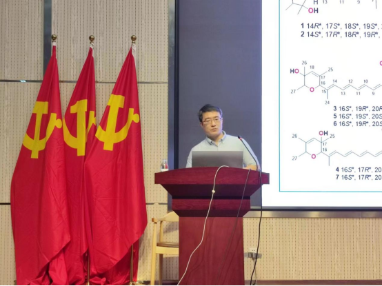 李德海教授以天然产物对创新药物的重要作用引入海洋生物资源,提出海洋天然产物是最活跃的研究领域。接着讲述了海洋药物合成面临的问题,技术的繁杂及历时之长。其次讲述了目前取得的一些成果,例如基于沉默基因的化合物激活;基于功能集团的化合物发现;基于复杂先导结构简化的化合物发现;基于靶点的化合物发现基于表型的化合物发现等。接着讲解了三个深入研究天然产物合成有关的故事,使同学们更加详细的了解了天然药物的研发过程。报告最后李德海教授热情的回答了同学们的问题,解答了同学们在学术上的问题,同时向同学们提出了深切的期望。