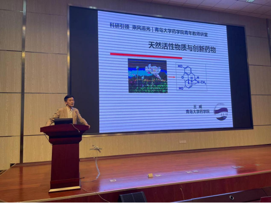 在自然的王国里,天然药物是守护人类健康的使者,在斑斓的学科里,化学是最迷人的色彩,当天然药物遇上化学,就像风雨邂逅阳光而生的彩虹,迸发出激烈的火花,孕育出数不尽的药物。在天然药物化学负责人王威老师的分享下,同学们深刻感受到了天然药物的魅力。