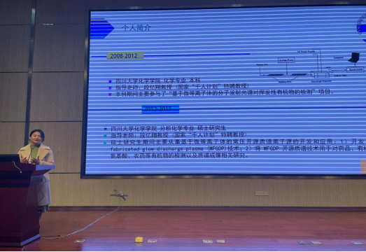 丁薛璐从“自律”“平衡”“计划”三个方面向同学们介绍了从事科研的良好习惯。她指出同学们应该提高自我要求,培养英文科研论文阅读、写作习惯,多思、多问、多看、多听,摆正心态,劳逸结合,定好目标及发展方向。