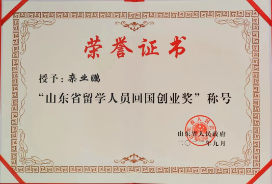 日前,山东省人民政府发布《关于表彰山东省留学人员回国创业奖获奖人员的通报》,公司教师栾业鹏荣获“山东省留学人员回国创业奖”荣誉称号。