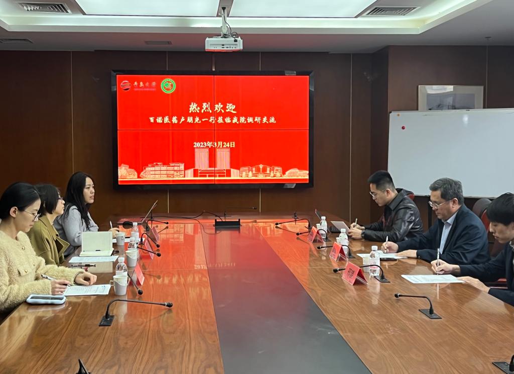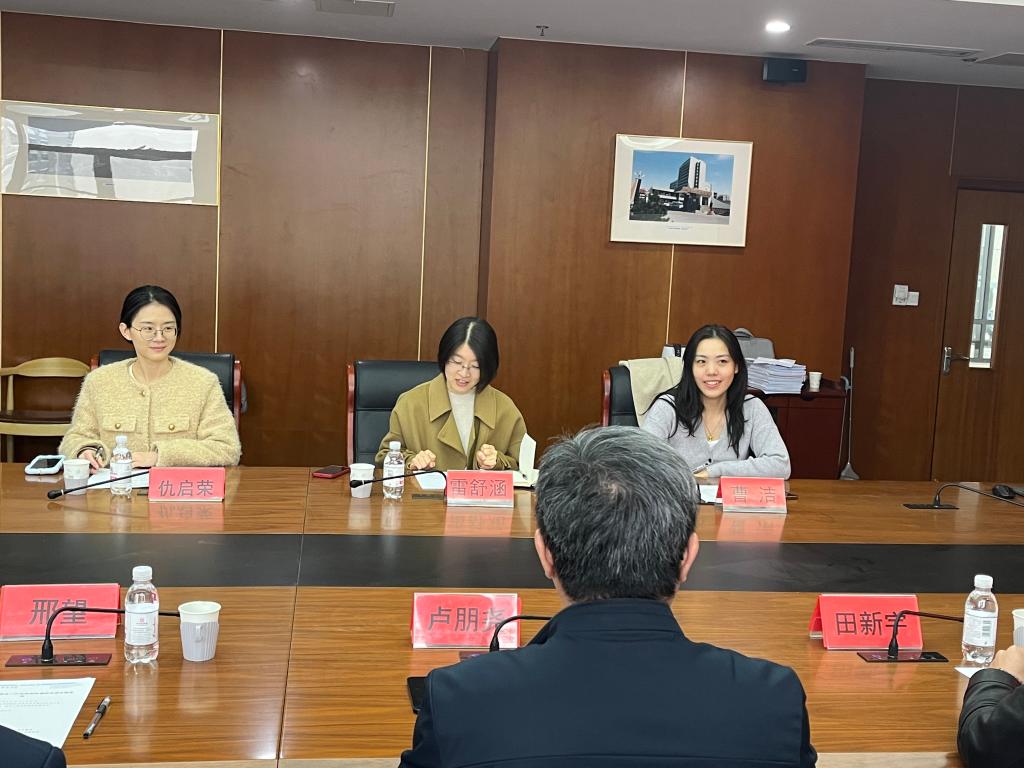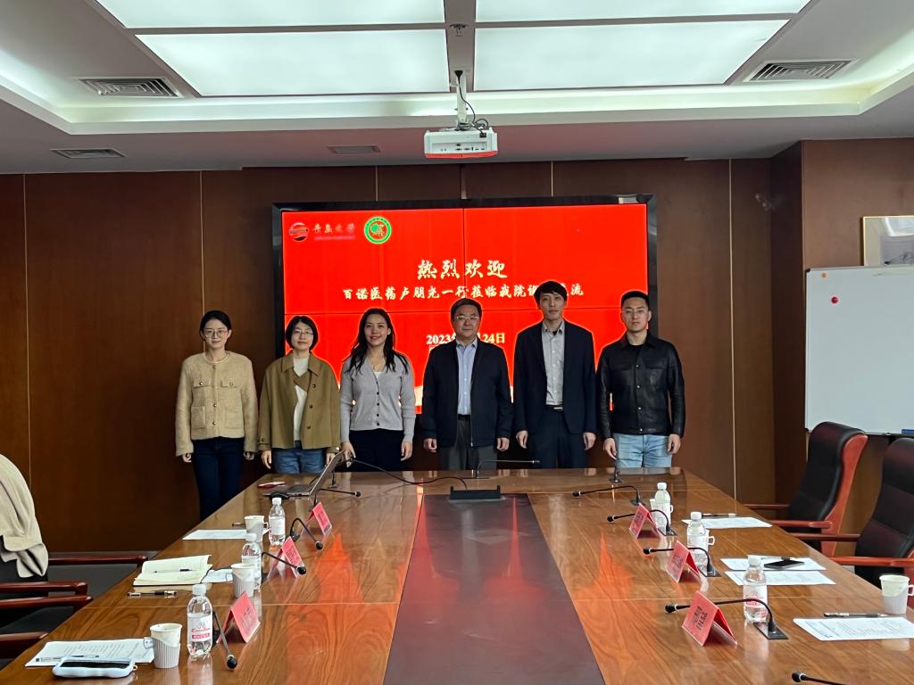 3月24日上午,山东百诺医药股份有限公司高级副总裁卢朋尧、人力资源总监邢望、校园招聘经理田新宇一行来公司调研交流,并于365英国上市公司浩园医学教育综合楼A110会议室举行交流座谈会。会议由365英国上市公司党委副书记雷舒涵主持、副经理曹洁、辅导员仇启荣参会。