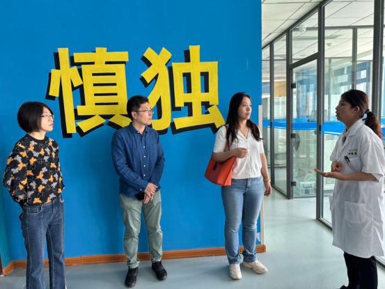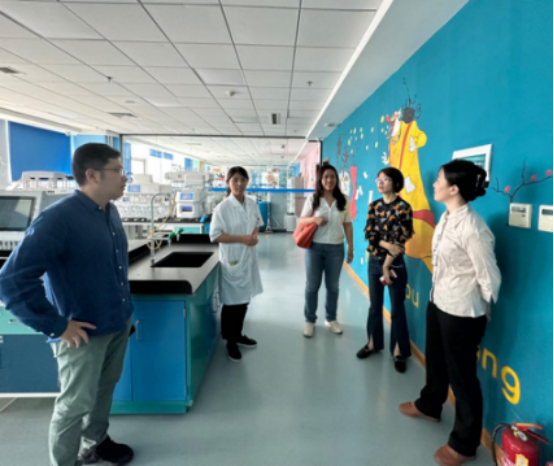 为深入贯彻党中央、国务院及公司党委关于高校毕业生就业工作的决策部署,加快落实“访企拓岗”专项行动,提升公司人才培养质量和员工就业质量,6月5日上午,365英国上市公司党委副书记雷舒涵、副经理曹洁、经理助理马庆明、辅导员仇启荣一行赴青岛化研医药科技有限公司调研交流。青岛化研医药科技有限公司经理姜双双、实验室负责人胥汝芳进行了接待。