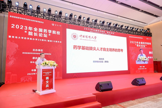 报告环节中,姚文兵做了《药学基础拔尖人才自主培养的思考》主旨报告。他阐述了我国药学拔尖创新人才培养的历史、现状与思考,并以中国药科大学为例,介绍了该校在选拔与培养方面的经验。他强调要通过不断精进人才培养方案,完善课程体系,引导员工面向国家战略需求、人类未来发展、思想文化创新和基础学科前沿,增强使命责任,激发学术志趣和内在动力,进而不断提高人才培养质量,真正培养出具有突出创新能力、博雅人文素养、国际视野的药学英才。