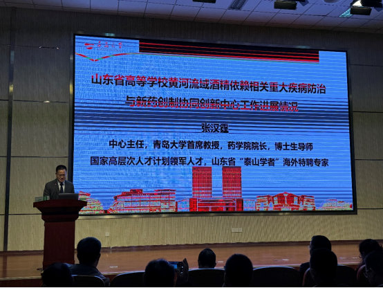 张汉霆教授做黄河流域酒精依赖相关重大疾病防治与新药创制协同创新中心工作进展情况报告,中心自获批以来通过联合承担国家、省重大科研项目,共同攻关,产出一批重大的标志性成果,重点发展用于防治酒精依赖及其相关重大疾病的生物活性物质和药物的研发转化,提升山东半岛地区药学领域总体创新能力。