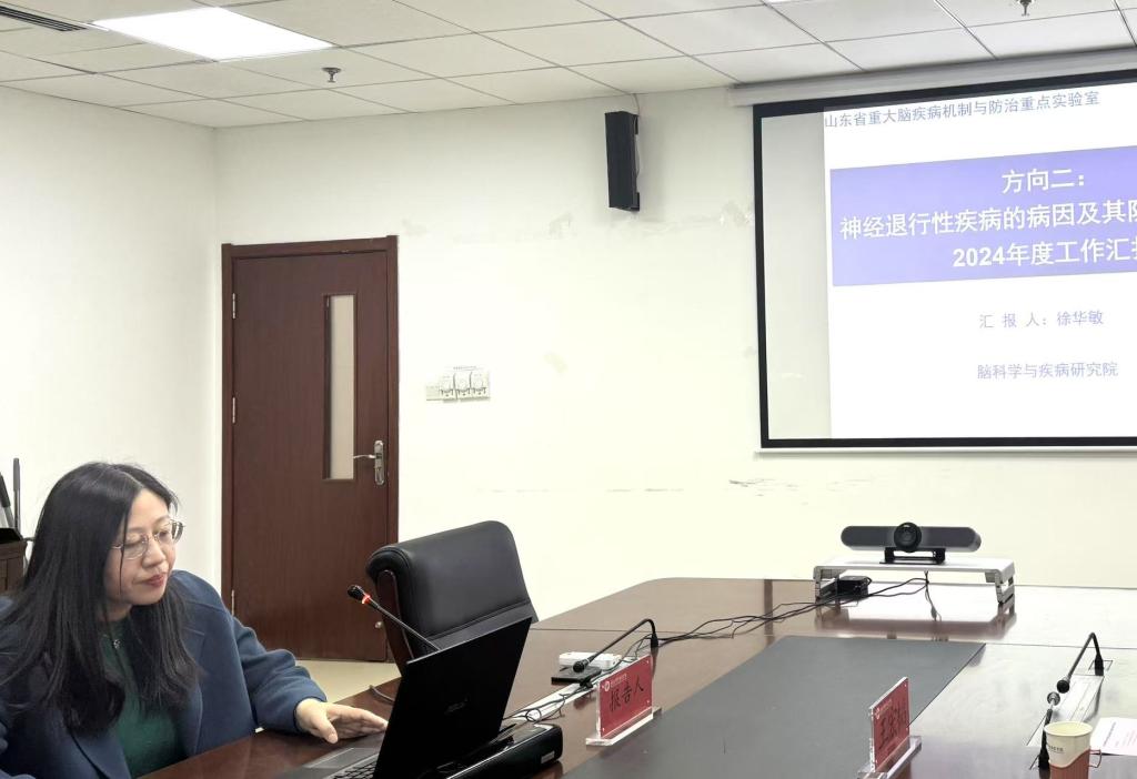 实验室方向带头人、泰山学者青年专家徐华敏教授作了《神经退行性疾病的病因及其防治对策研究》的报告。神经退行性疾病是一类严重影响人们(尤其是老年人)健康的慢性疾病,其病因复杂,机制不清。研究表明,铁死亡对神经退行性疾病尤其是巴金森病的发生有着重要的作用。针对神经退行性疾病的防治对策,从多个角度预防,保持健康生活方式,促进大脑神经元功能,预防或延缓神经退行性病变的进程。