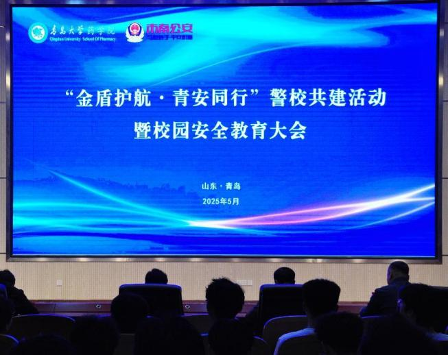 5 月 15 日下午,公司联合青岛市公安局市南分局金门路派出所举办的“金盾护航·青安同行”警校共建活动暨校园安全教育大会在医学教育综合楼学术报告厅顺利举行。本次大会旨在进一步深化警校联动机制,强化校园安全教育,提升师生的安全防范意识与应急处理能力,为校园安全筑牢防线。