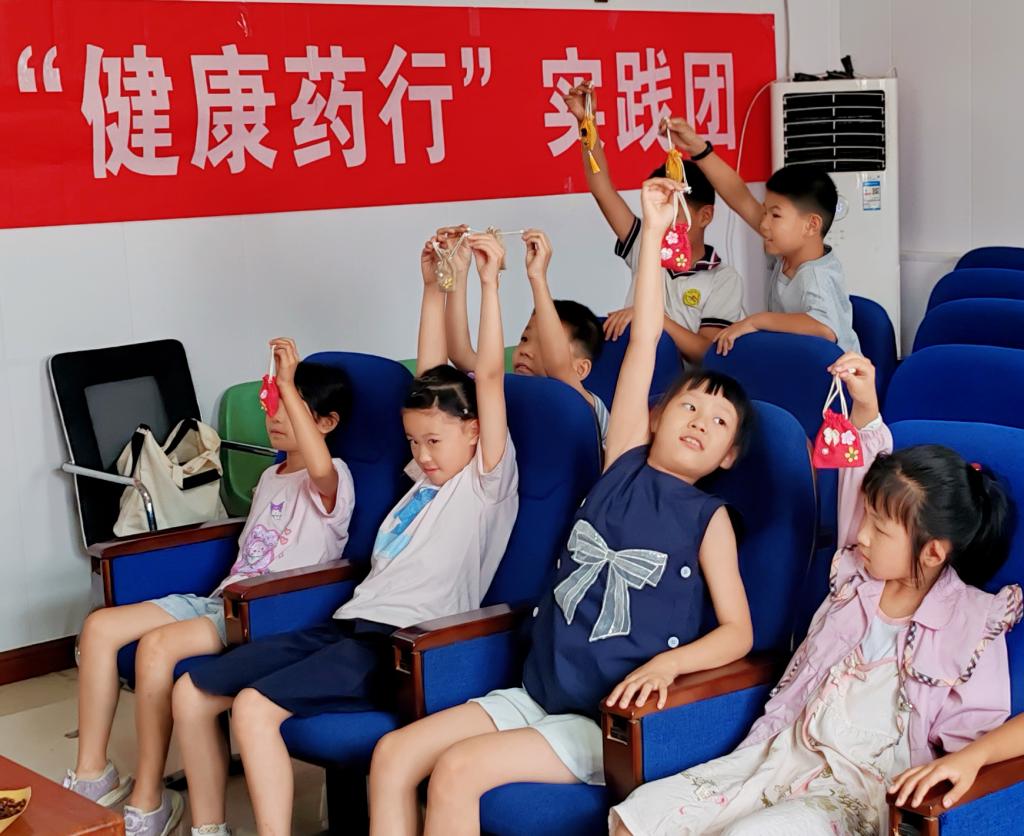 童研药香承古韵,锦囊系梦启岐黄。实践团成员化身“草药导师”,带领孩子们开启奇妙的香囊之旅。在实践团成员的指导下,孩子们将干燥的药材放入石臼,手握研杵,专注研磨,小小的香囊在稚嫩的指尖逐渐成型。“我要挂在书包上!”高举的香囊如勋章,药香裹着童真的欢笑声在梁间久久回荡。这场“触得到草叶肌理、学得会配伍要诀、做得出防蚊香囊” 的沉浸式课堂,让中华医药智慧在石臼与锦囊的碰撞间悄然苏醒。当最后一缕药香渗入夏风,那些系在书包穗子上的小巧锦囊,正化作连接千年本草与健康中国的芬芳纽带。