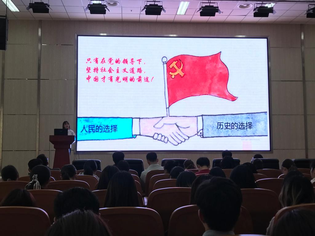 会上,初赛胜出的选手程金倩、伍思怡、高阳、张玉香、官宇晴、张凯杰依次进行宣讲。他们围绕“百年政党,百变家乡”、“光辉的历程--100年中国共产党党史”、“我的家乡党史”等主题,结合精心制作的PPT,通过简洁凝练的语言,聚焦党的理论知识,图文并茂的分享了自己家乡的党史故事、展示了百年来家乡的巨大变化和对党对祖国的感恩和思考。伍思怡饱含深情地描述了她的家乡四川七里村建党百年来,成为四川省内新农村建设“产业兴、百姓富、乡村美”典范的过程。高阳说,记初心、担使命就要始终不忘理想信念这一根本,始终不忘推动发展这一要务,始终不忘为民服务这一宗旨,始终不忘纪律规矩这一底线。程金倩发言道,只有了解家乡历史的大事件,才能品味历史演变的内在规律、把握历史发展的趋向,进而从历史的玄机中找到发展之路。