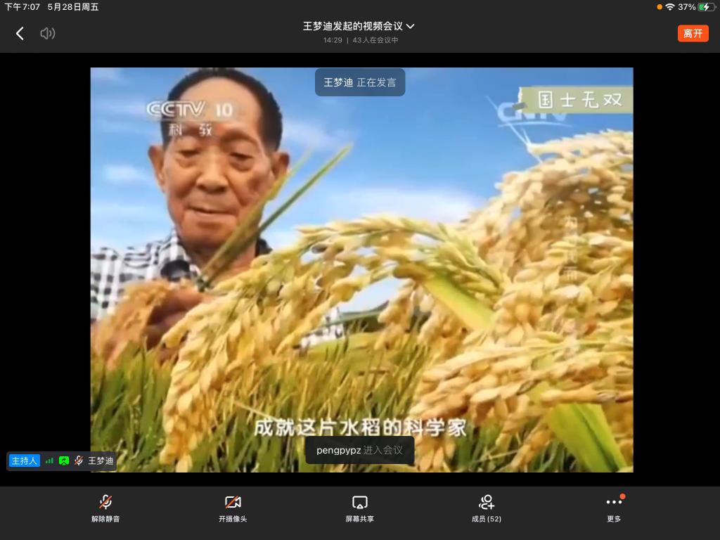 禾下乘凉梦,一稻一人生。为悼念“共和国勋章”获得者、中国工程院院士、杂交水稻之父袁隆平先生,推进“党史学习教育”专题,5月28日晚,365英国上市公司员工党支部全体党员在线上观看了央视纪录片《为时代而歌:袁隆平》,再次回顾袁老一生的耕耘,深切缅怀袁隆平,向“国之脊梁”致敬。
