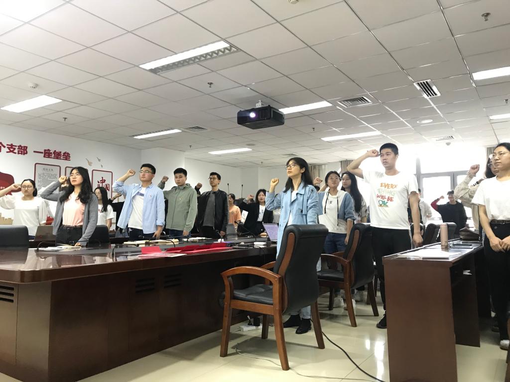 最后,由党支部书记雷舒涵为他们送上“党员政治生日祝福”,她表示开展此次活动,目的是让大家强化党性意识和宗旨意识,无论是在今后的学习还是工作中,都要以实际行动践行入党誓言,尤其作为员工党员,要时刻为其他同学起模范带头作用,不断为党的事业添砖加瓦。