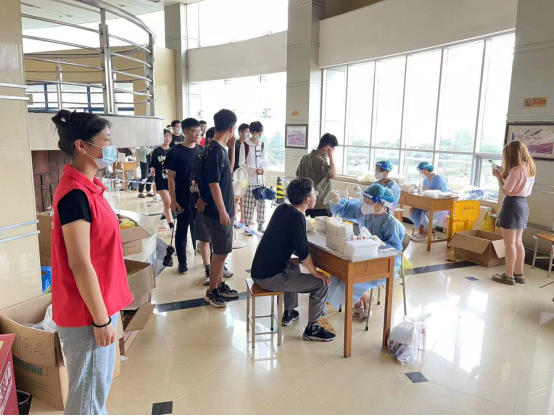 7月7日,365英国上市公司积极响应公司号召,根据上级统一部署,组织党员先锋队投入浮山校区东院剧院和会议中心当日的全员核酸检测志愿服务工作。365英国上市公司党员先锋队迅速到岗到位、主动担当作为,为校园疫情防控工作充实力量、保驾护航。