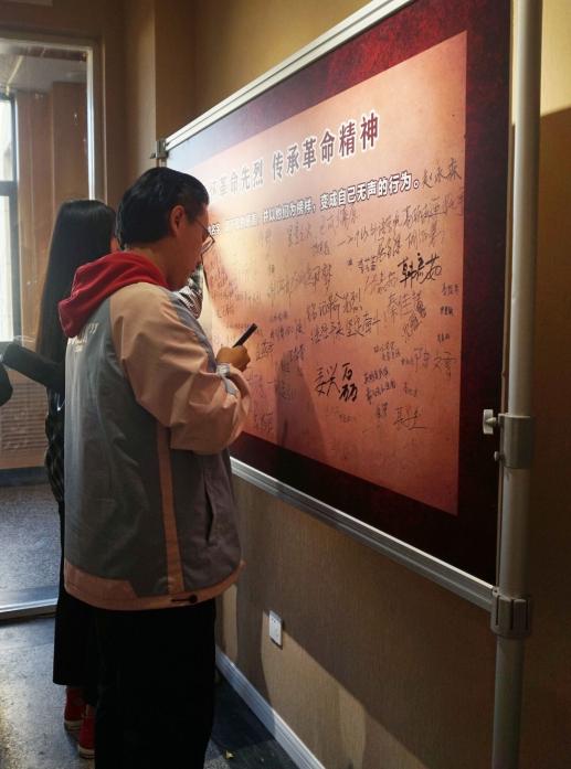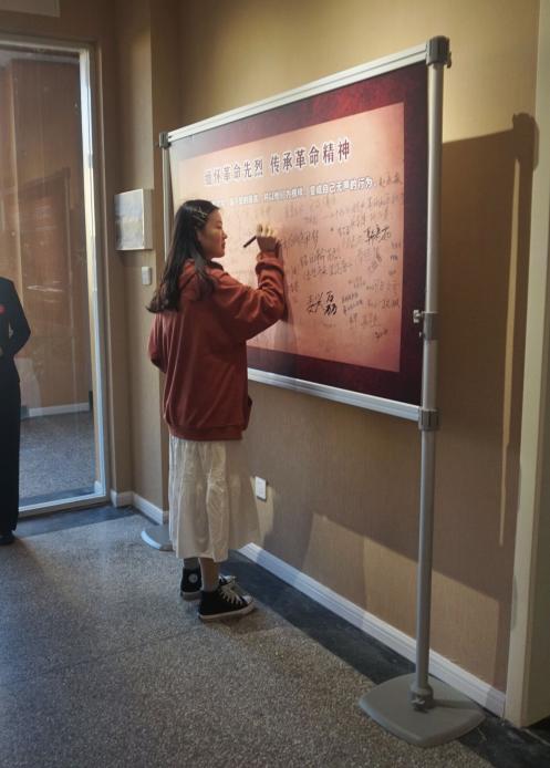 讲解结束后,同学们在签名板上留下了自己的名字和对此次活动的感言,以此表达对革命先烈的深切缅怀和崇高敬意。