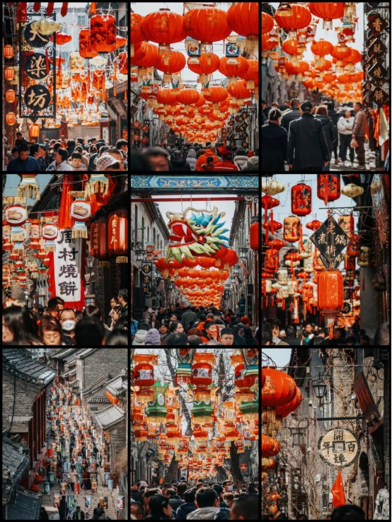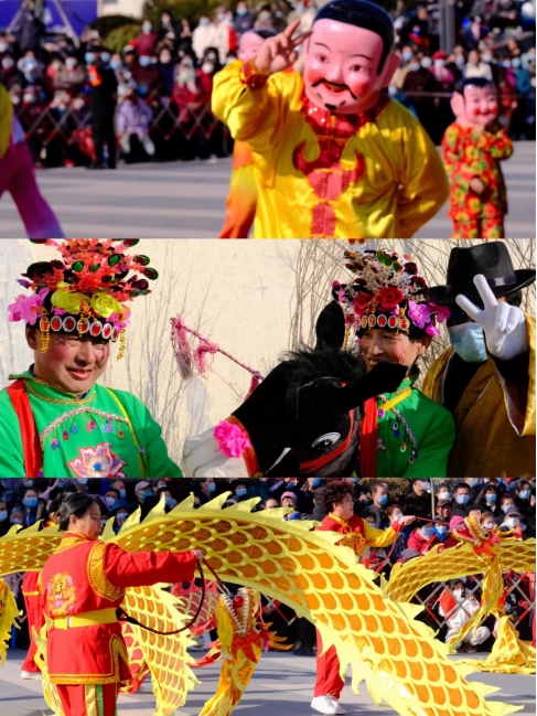 淄博博山在春节期间会举办非遗高跷、扮玩等活动,还有带有春节记忆和国潮氛围的灯会、集市,让群众寻年味、拾年俗、知文化。淄博淄川区延续了扮玩传统,全村老少积极参与,表演秧歌、赶毛驴、划旱船、推小车节目。