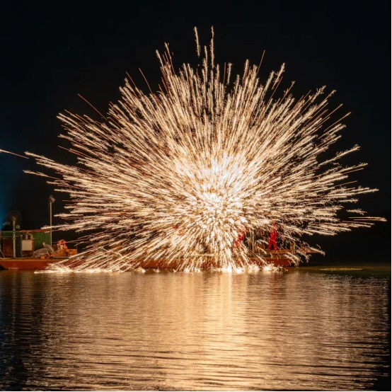 淄博打铁花产生于元朝,岁末年初时,工匠们将剩余铁汁对空击打,铁花四溅。表演时,工匠手托特制木板,将铁汁抛起后用木板击向空中,形成如泼金撒银、金蛇狂舞般的壮观景象。
